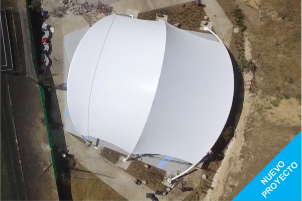 Proyecto de cobertura para pistas de pádel que combina estructura resistente y lona técnica, ofreciendo protección frente a sol, lluvia y viento, mejorando la durabilidad de la pista y la experiencia de juego durante todo el año.
