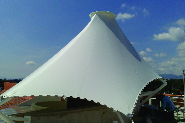 Las velarias son cubiertas tensadas fabricadas con membranas textiles de alta resistencia como PVC, PTFE o HDPE, diseñadas para brindar protección solar y climática. Su sistema estructural integra cables, tensores y elementos de anclaje calculados para soportar cargas de viento y lluvia, garantizando estabilidad, durabilidad y óptimo desempeño estructural. Son una solución eficiente y versátil para espacios arquitectónicos y urbanos.